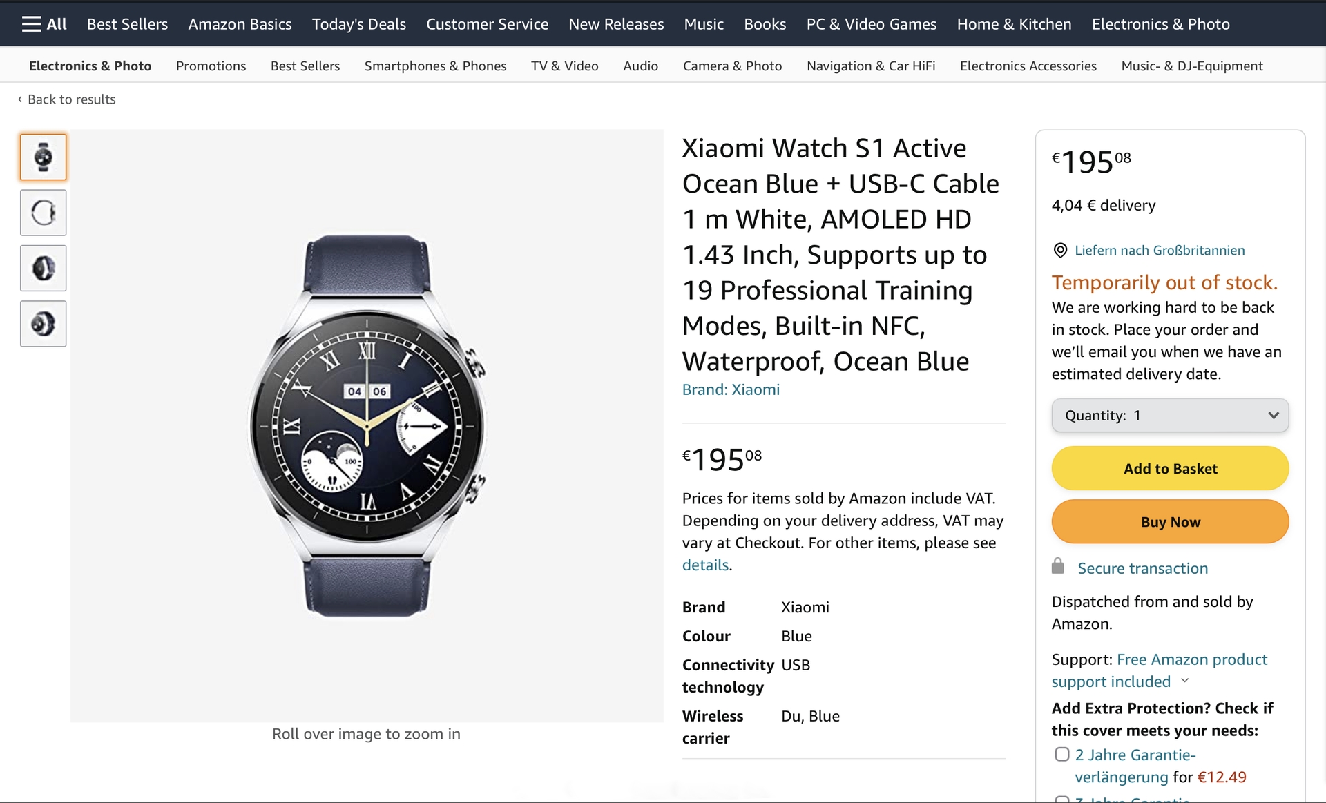 W zeszłym tygodniu pisaliśmy, że firma Xiaomi zamierza wprowadzić na rynek w Europie inteligentny zegarek Xiaomi Watch S1 Active. W oczekiwaniu na ogłoszenie nowość „zapaliła się” na niemieckiej wersji Amazona.