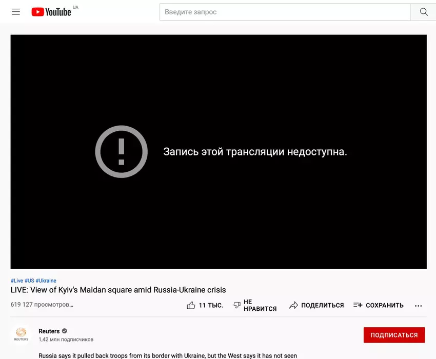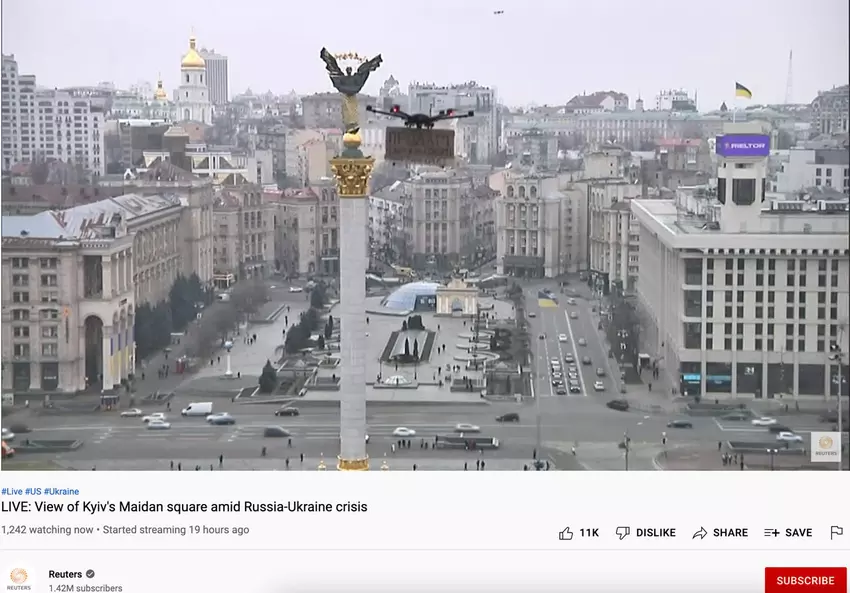 informacyjny agencja 15 lutego Reuters uruchomił audycję z centrum Kijowa zatytułowaną „Widok na Majdan w Kijowie na tle kryzysu rosyjsko-ukraińskiego”. Po prawie dniu w kadr wpadł dron z reklamą.
