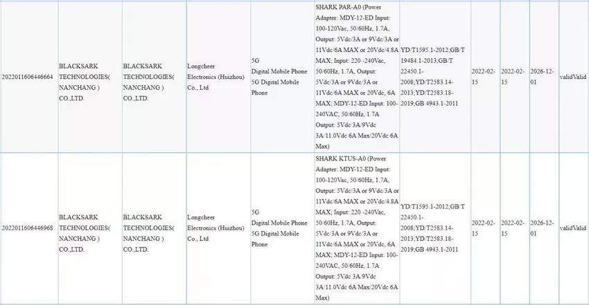 Dzień wcześniej, Insider Digital Chat Station wspólny informacje o gamingowych smartfonach Black Shark 5 i Black Shark 5 Pro. Następnie oba modele trafiły do bazy danych 3C.