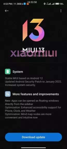 Smartfon zaczął otrzymywać stabilną wersję MIUI 13 opartą na systemie Android 12. Numer kompilacji to V