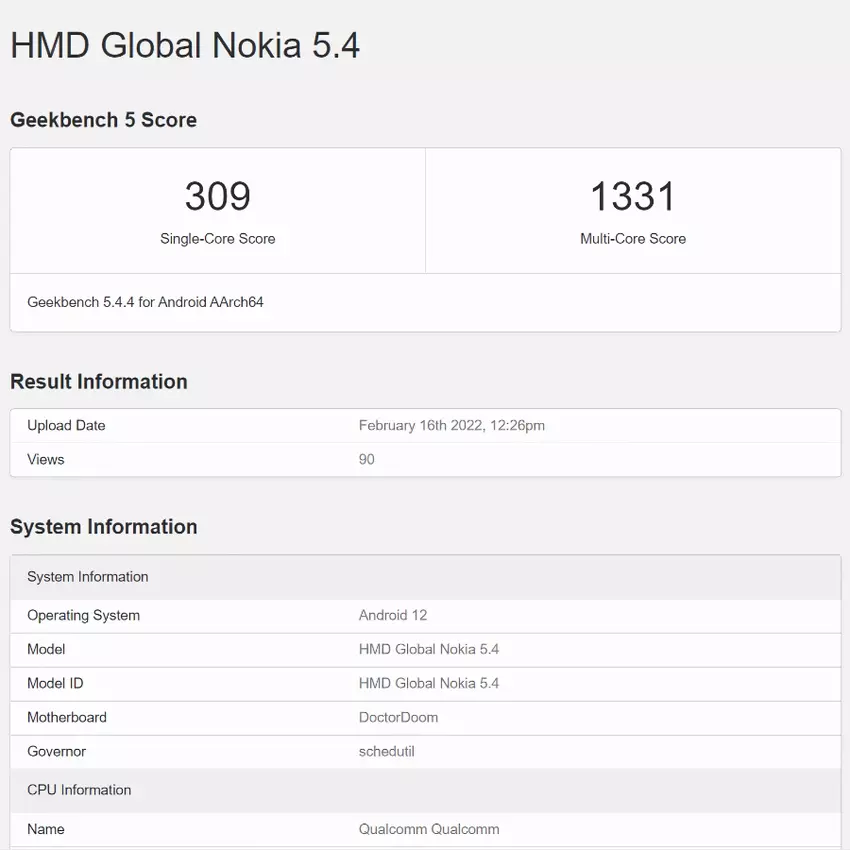 Mowa o modelu Nokii 5.4. Smartfon został zauważony w bazie Dane Geekbench z systemem operacyjnym Android 12 na pokładzie. W związku z tym programiści firmy już testują nową wersję systemu operacyjnego. Najprawdopodobniej wydanie oprogramowania nastąpi w najbliższej przyszłości.