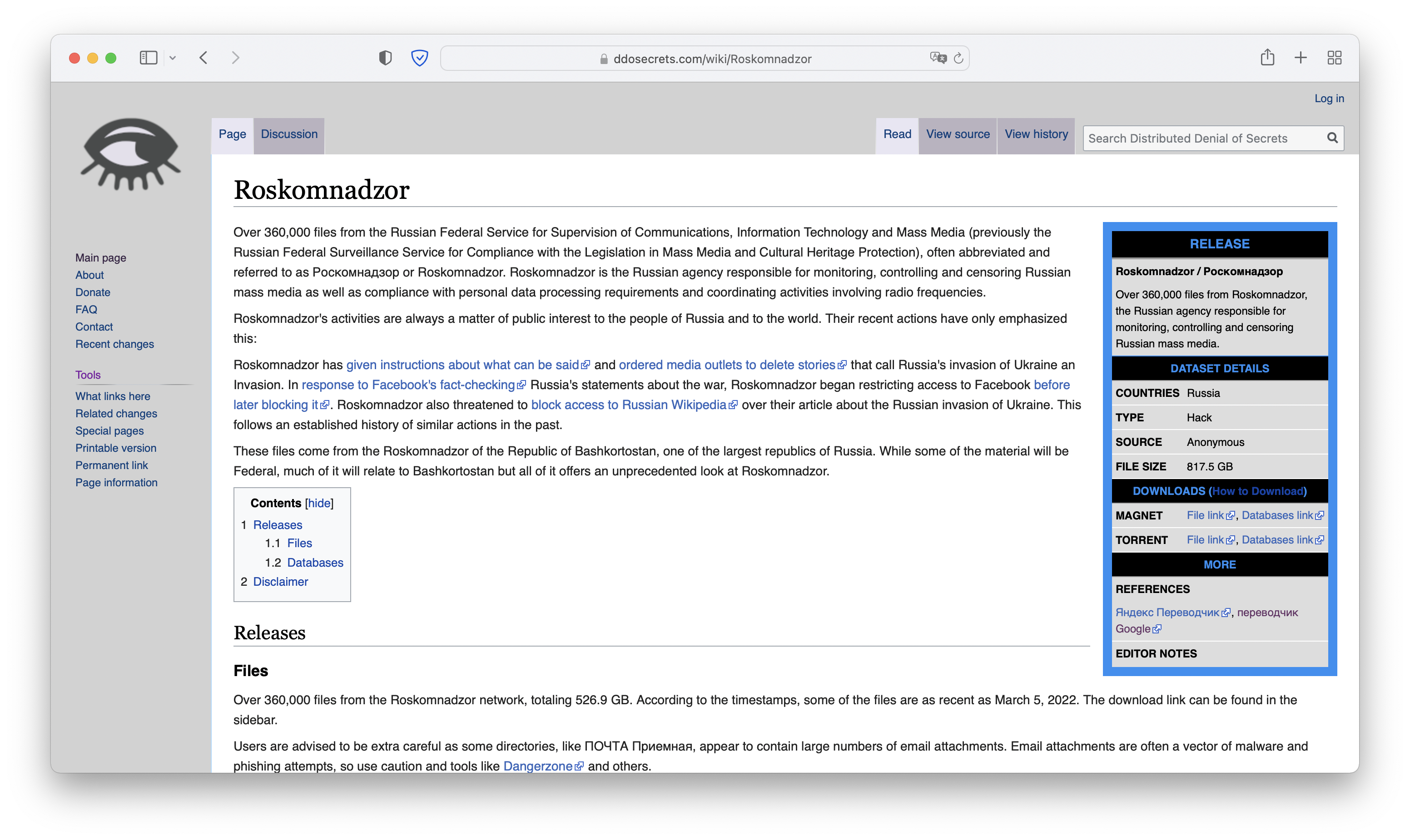 Anonimowi hakerzy zhakowali Roskomnadzor i przesłali do sieci 800 GB plików departamentów