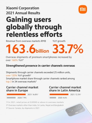 Xiaomi stale rozszerza swoją globalną obecność. Raport finansowy ujawnił, że prawie połowa łącznych przychodów pochodziła z rynków zagranicznych – 163 CNY. 6 miliardów, 33,7% wzrost wartości pieniężnej od 2020 roku.