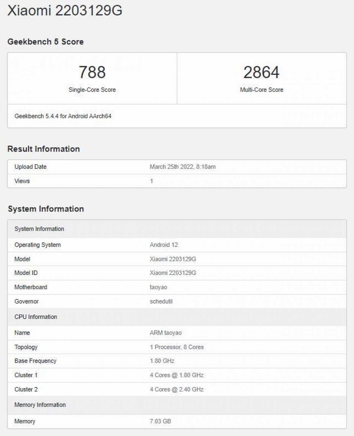 Wyniki benchmarku są zgodne z innymi telefonami, wyposażonymi w ten sam chipset – 778 dla pojedynczego rdzenia i 2864 dla wielu rdzeni. Lista ujawniła również Androida 12 po wyjęciu z pudełka, który powinien mieć MIUI 13 na wierzchu.
