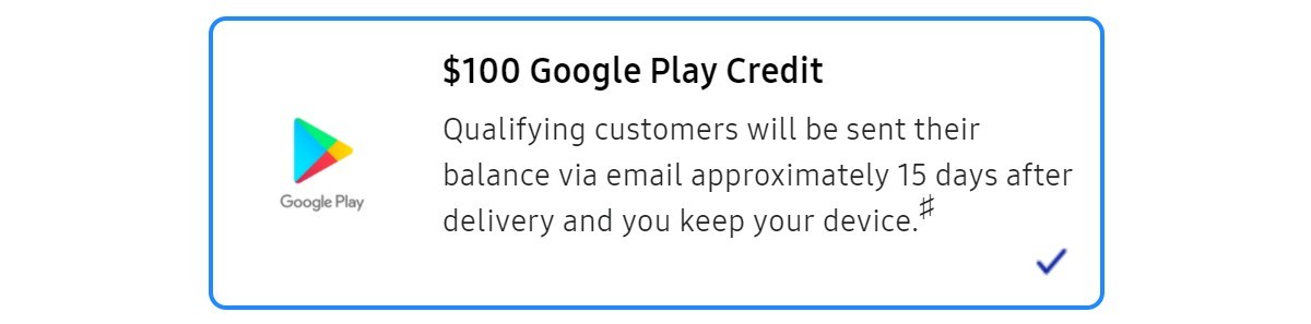 Możesz także zdobyć 100 USD środków w Sklepie Google Play, które możesz odebrać w aplikacji Samsung Members.