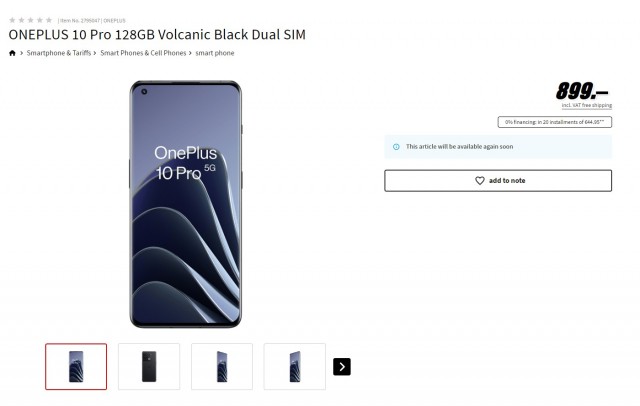 OnePlus 10 Pro pojawia się na MediaMarkt.de z ceną EUR900