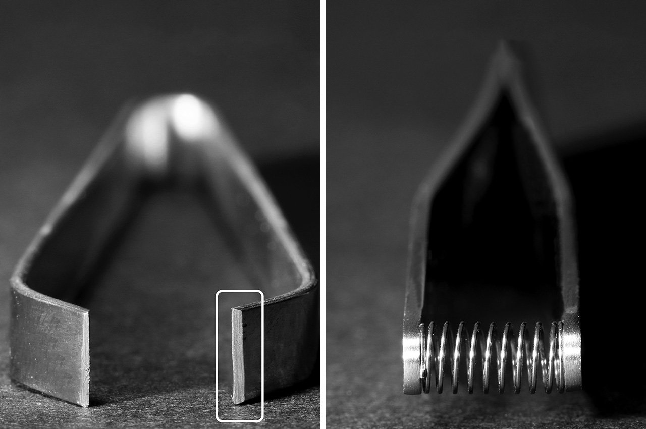 - Sprężyna Nikkena ma kwadratowy przekrój, dzięki czemu mocniej trzyma włosy, aby nie wyślizgiwały się z uścisku pęsety podczas ciągnięcia