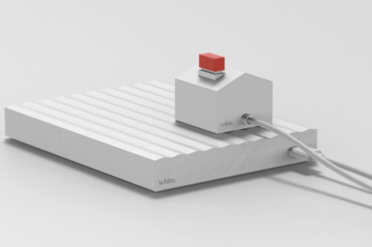 Niezależnie od tego, czy zgadzasz się z tym prawie wymyślonym wyjaśnieniem, trudno argumentować, że kabina jest dość kreatywnym sposobem na połączenie użyteczności i dekoracji w zabawny sposób, który nie zwraca na siebie zbyt wiele uwagi. Na pierwszy rzut oka zestaw wygląda jak biały dom z czerwonym kominem osadzonym na białej równinie. W rzeczywistości te trzy są również trzema głównymi częściami tego zwodniczego zestawu akcesoriów komputerowych.