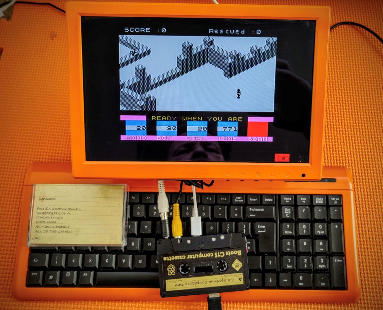 5 mm wnętrze kasety oznaczało, że Stuart musiał zhakować swoje rozwiązanie. Stuart musiał wyciąć część płytki drukowanej Raspberry Pi Zero W, aby stworzyć iluzję. Na szczęście nie wpłynęło to na funkcjonalność jego komputera. Stuart sprytnie wykorzystał swoje porty GPIO do ich przechowywania. Pozwala to podłączyć kable i sprawić, by działało. To również wymagało trochę cięcia i szlifowania, chociaż nie wpłynęło to na przedni profil kasety, pozostawiając go dokładnie tak, jak powinien. Stuart wydrukował etykiety, aby przyczepić etykiety na górze swojej kasety. Teraz używa swojej kasety ZX Spectrum Pi jako urządzenia „podnieś i graj”, gdy tylko ma ochotę na „szybkie uderzenie w jakąś oldskulową grę”.