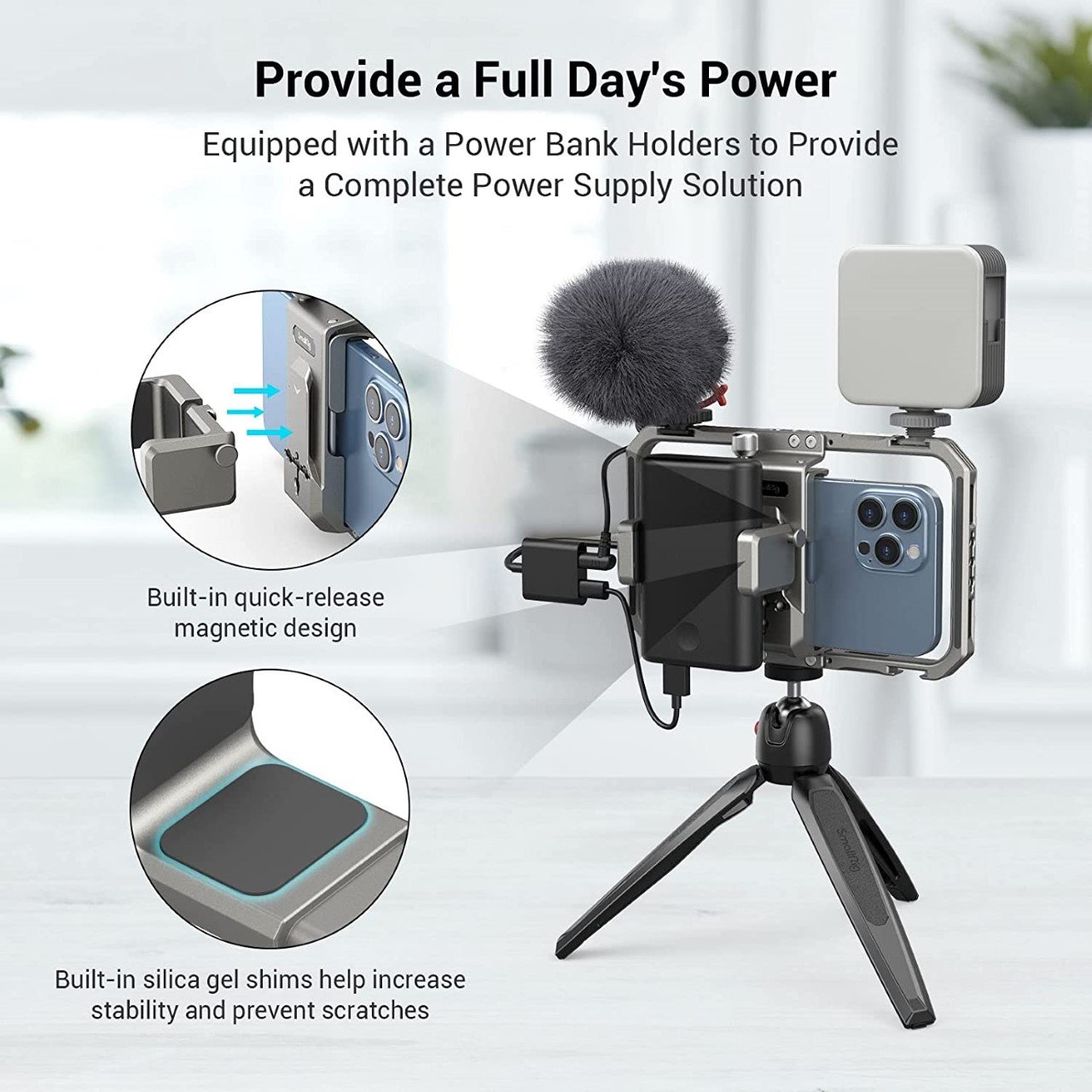 Znany z produkcji akcesoriów do telefonów, lustrzanek cyfrowych, aparatów bezlusterkowych, a nawet aparatów filmowych, katalog SmallRig obejmuje wszystko, od rigów po mocowania, statywy, softboksy, światła, a nawet adaptery obiektywów. 3611 to stosunkowo kompaktowa klatka na telefon wykonana ze stopu aluminium, zaprojektowana do szerokiej współpracy z iPhonem i serią Samsung Galaxy, a nawet serią Pixel. Zestaw jest wyposażony w wiele gwintowanych otworów 1/4”-20 i zimne buty, aby pasowały do ekosystemu akcesoriów SmallRig. Zestaw jest wyposażony w zacisk, który bezpiecznie trzyma telefon i można go regulować/przesuwać, aby mieć pewność, że chwyta urządzenie bez blokowania aparatu lub przypadkowego naciskania jakichkolwiek przycisków.