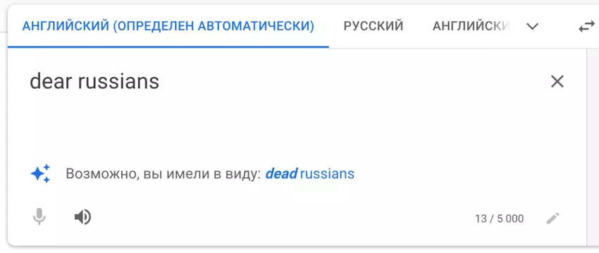 Internetowy system tłumaczeń automatycznych Google Translate sugeruje, aby podczas tłumaczenia wyrażenia „drodzy Rosjanie” (drodzy Rosjanie) zamienić je na „umarli Rosjanie” (umarli Rosjanie). Redakcyjny gg wszyscy sprawdzili to oświadczenie i osobiście upewnili się, że w momencie publikacji tego newsa wszystko dokładnie tak działa. Możesz samodzielnie sprawdzić opcję rekomendacji Google, jeśli przejdziesz przez to połączyć.