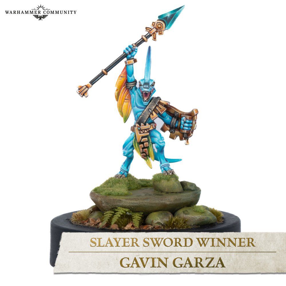 W zatłoczonym polu wysokich mechów i wyszukanych dioram, model, który wygrał, była pojedynczą miniaturą jaszczurkoczłowieka, który miał zaledwie jeden cal wzrostu. Jest kinowa i przywołuje zwycięstwo ciężkiej pracy lub zimnej krwi żołnierza zmierzającego do bitwy. Pokazany artyzm był niesamowity. Cieniowanie było bezbłędne, z płynnym połączeniem jasnych i ciemnych odcieni kremowych. Sędziowie nazwali to „dosłownie idealny ”, i trudno się z tym nie zgodzić. Tłum stojący tylko pod ręką dał swojemu malarzowi, Gavin Garza, gromkie brawa.