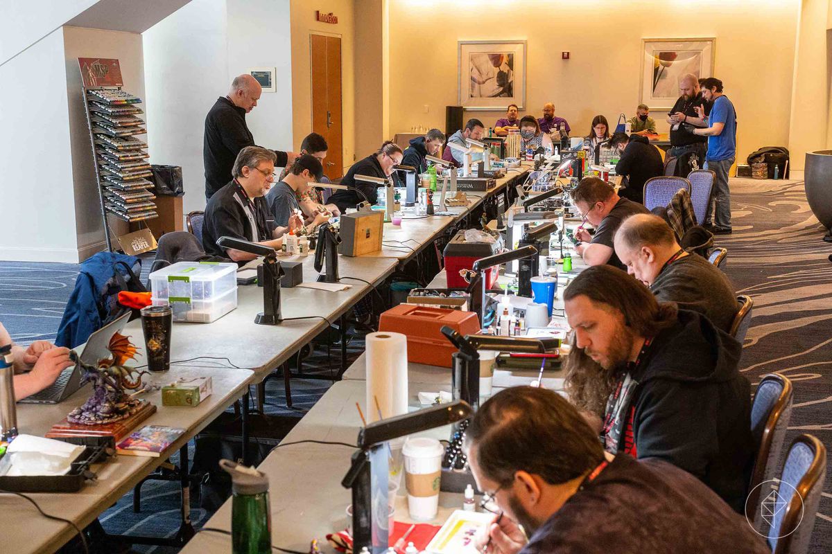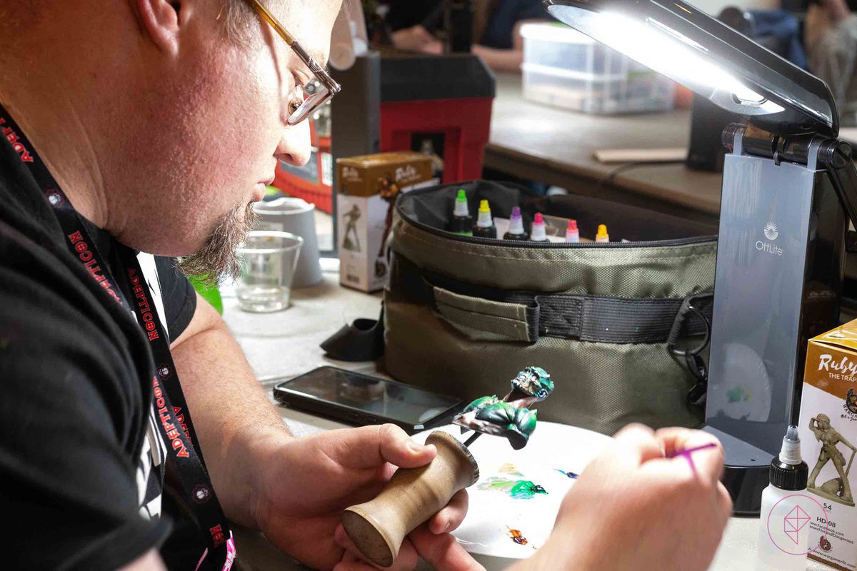 Ale w centrum tego wszystkiego znajdowała się pracowita kohorta amatorskich i profesjonalnych miniaturowych malarzy, którzy robili swoje. Stworzyli własne oświetlenie i palety oraz podzielili się wskazówkami. Odwiedzający mogli z łatwością spędzać cały czas w pobliskich salach lekcyjnych, ucząc się trudnych technik, takich jak mieszanie na mokro, glazurowanie i wietrzenie od najlepszych malarzy miniaturowych na świecie.
