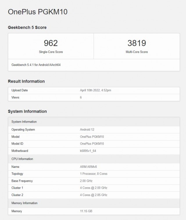Świeża plotka z zeszłego tygodnia sugeruje, że OnePlus Ace wymyśla chipset Dimensity 8100 i ładowanie 150 W. Oczekuje się, że urządzenie będzie przemianowanym na Realme GT Neo3 i teraz przeszło przez Geekbench z identyfikatorem PGKM10.