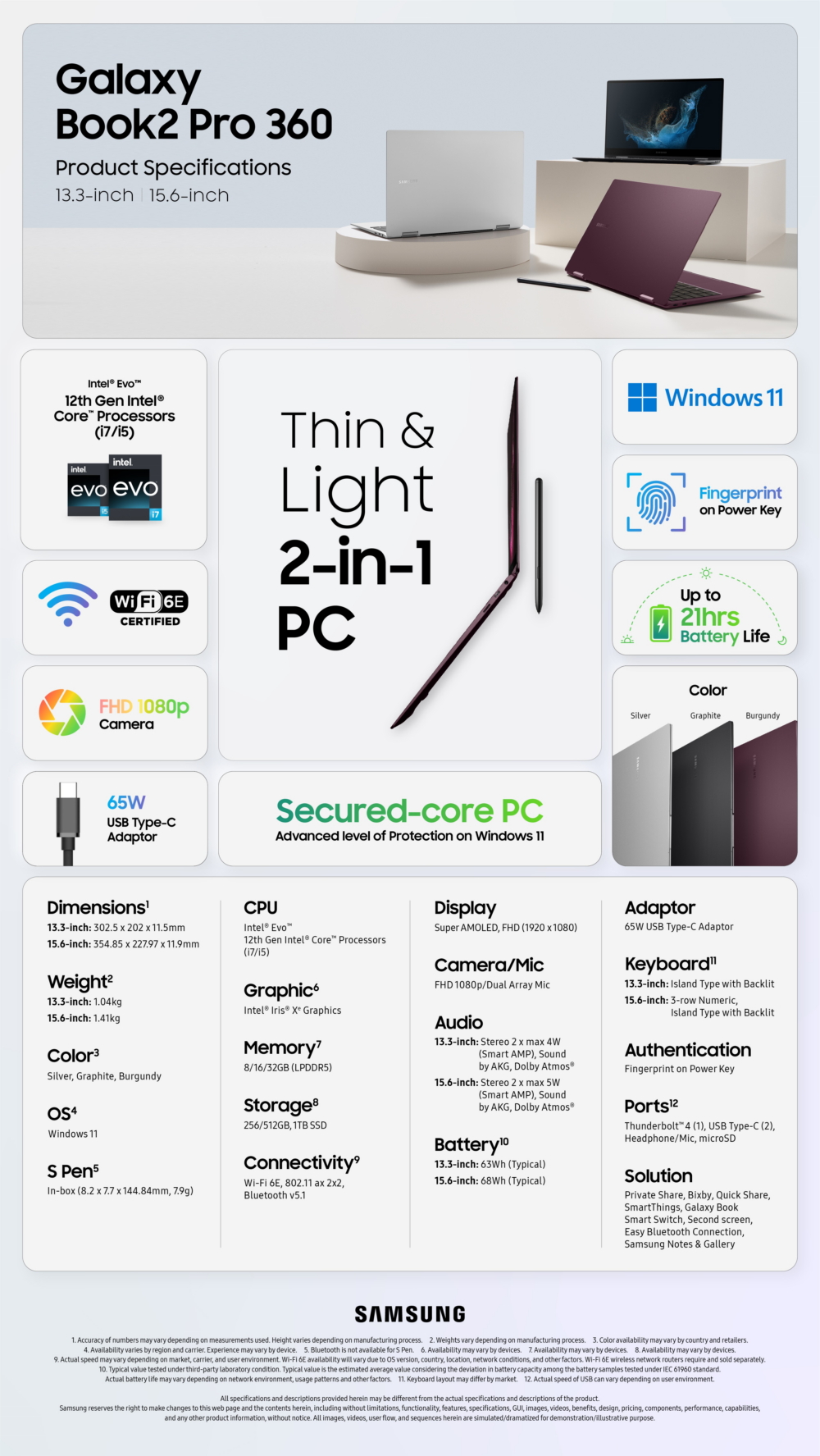 Spójrz na poniższą infografikę, aby dowiedzieć się więcej o Galaxy Book2 Pro 360.