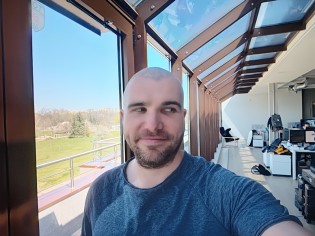Selfie wykonane kamerą pod wyświetlaczem, która stawia na niewidzialność, są przewidywalnie złe. Te zdjęcia nie mają znaczących szczegółów, mają słaby kontrast i wyraźną definicję. Słaba jest też dynamika. Ta kamera byłaby używana tylko do rozmów wideo. Mogliśmy też robić selfie za pomocą głównych tylnych aparatów.