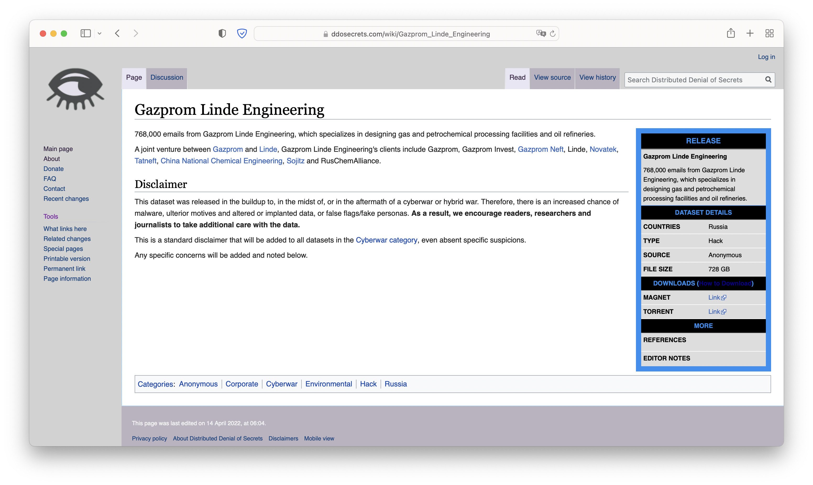 TYLKO W: #Anonimowy właśnie wyciekło 768 000 nowych e-maili (728 GB) przez #DDoSecrets z firmy Gazprom Linde Engineering, która specjalizuje się w projektowaniu obiektów przetwórstwa gazu i petrochemii oraz rafinerii ropy naftowej. #OpRosja #OpKreml #Wolna Ukraina pic.twitter.com/kfn10lIcEo