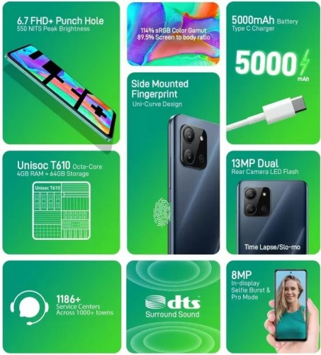 Hot 11 2022 ma montowany z boku czytnik linii papilarnych i obsługuje dźwięk przestrzenny DTS. Zawiera akumulator 5000 mAh ładowany przez port USB-C z mocą do 10 W.