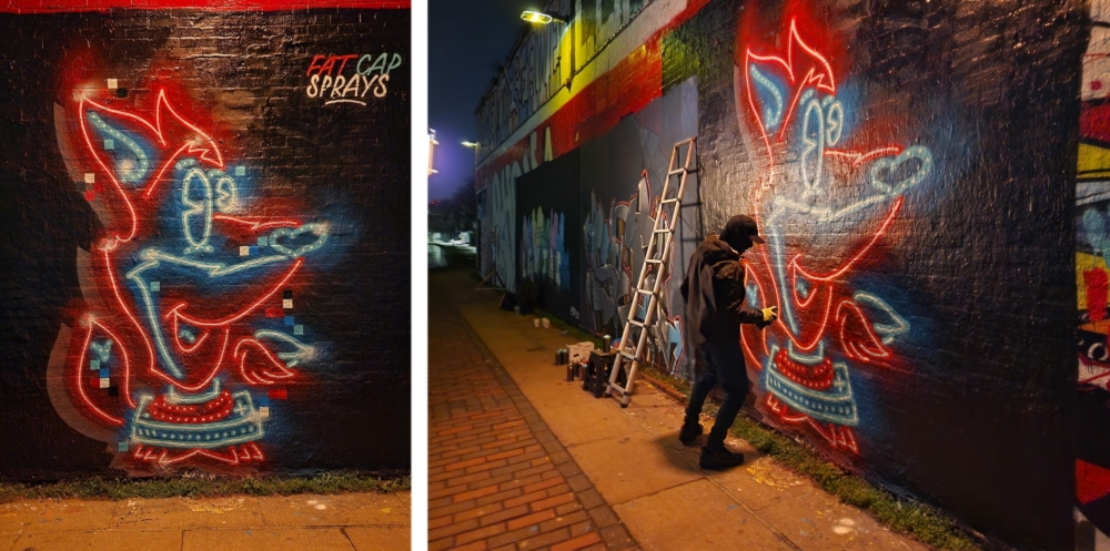 Fat Cap Sprays to znany artysta graffiti, który tworzy świecące dzieła sztuki, które przyciągają uwagę. Ale ze względu na charakter pracy artysty — często pracuje pod osłoną ciemności — słabe warunki oświetleniowe wcześniej utrudniały uchwycenie zarówno procesu pracy artysty, jak i efektu końcowego.