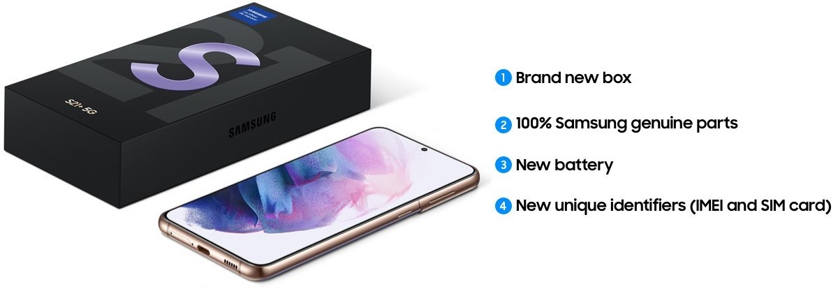 W każdym razie te telefony Galaxy S21 zostały przywrócone przez sam Samsung do jak nowego stanu. Telefon jest dostarczany z nową baterią i niezbędnymi częściami zamiennymi. Do telefonu zostaje przypisany nowy numer IMEI, nie pozostawiając połączenia z poprzednim właścicielem. Odnowione telefony objęte są roczną gwarancją.