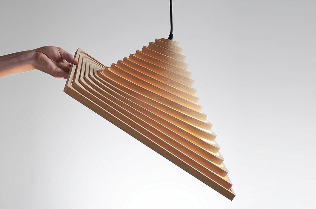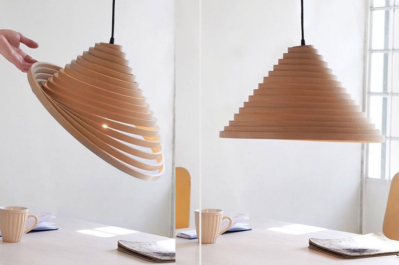 „Naszym obowiązkiem jako projektantów jest produkowanie przedmiotów o jak najmniejszej objętości. Celem jest wykorzystanie jak najmniejszej ilości surowca, aby wyprodukować przedmioty o długiej żywotności, które można łatwo poddać recyklingowi” – ​​mówi Guille Cameron. Jest minimalistyczny, prosty, a jednocześnie elegancki i niepowtarzalny. Lampę można złożyć, aby nadać jej nowy wymiar. Dodatkowo drewniana podstawa jest ciepła i przyjazna w każdym pomieszczeniu.