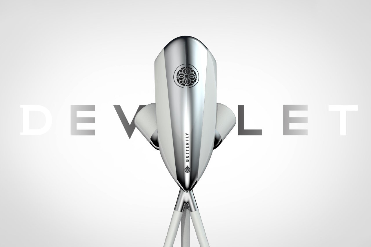 Oszałamiająca koncepcja głośnika Devialet Butterfly charakteryzuje się eleganckim wyglądem i komorami audio z podwójnym wypalaniem