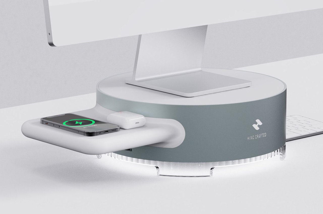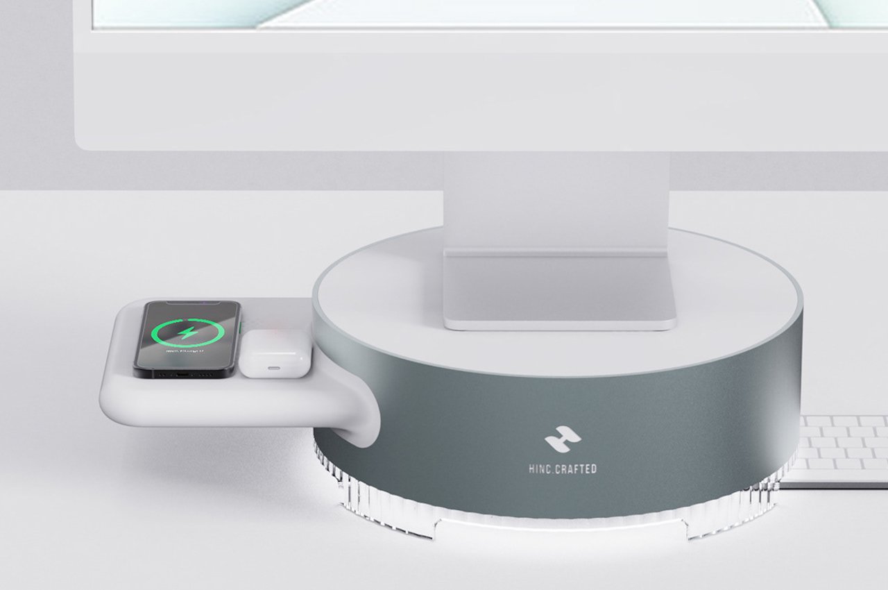 iMac G4, który zadebiutował w 2002 roku, był prawdziwą ikoną designu, ponieważ nie przypominał niczego innego, co istniało w tamtych czasach. Podczas gdy świat wciąż zmagał się z pudełkowymi plastikowymi komputerami, G4 miał ten intensywnie piękny organiczny design podkreślony chromowanymi detalami. Unosił się nad resztą, dzięki regulowanej podstawie, torując drogę przyszłym komputerom iMac, które do dziś zachowują szczegóły, aby utrzymać właściwy poziom oczu. Ta dziwaczna mała ładowarka, nazwana tytułowo G4, to czubek kapelusza dla swojego 20-letniego poprzednika. Ma tę samą podstawę w kształcie kopuły i chromowaną podstawkę, na której znajduje się element do bezprzewodowego ładowania MagSafe, który pozwala przypiąć do niego iPhone'a. Gdy iPhone wygodnie ułoży się na swoim miejscu, zamienia się prawie w miniaturowy komputer, unoszący się nad ziemią w sposób, który ułatwia przeglądanie i używanie jego wyświetlacza, umożliwiając stuknięcie i przeciągnięcie!