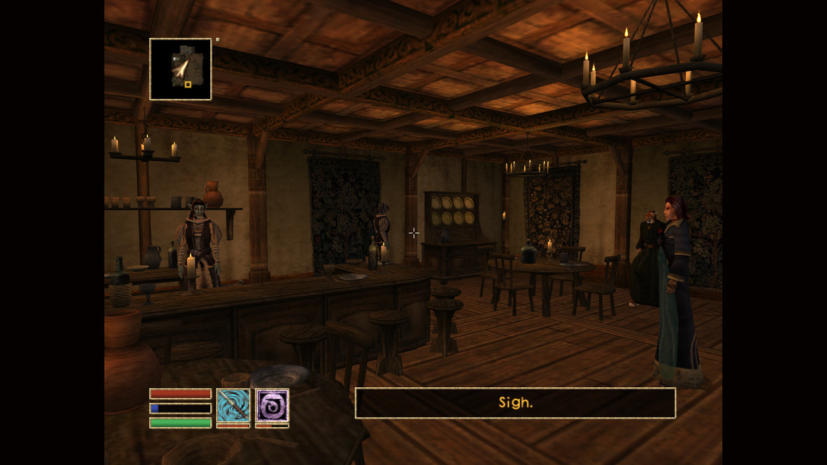 Nie miałem przyjaciół w szkole, ale mieszkańcy Vvardenfell nie przejmowali się moim brakiem pozycji społecznej. Chcieli tylko skrytykować mój status obcokrajowca, albo biegać nago, albo powstrzymywać ich od ważnej pracy, jaką jest kręcenie się w promieniu 5 stóp i gapienie się tępo w dal. Głos w grze również był dość ograniczony, a dialogi dostarczane były głównie za pośrednictwem pól tekstowych. Przyniosło to zabawną korzyść polegającą na tym, że mogłem przypisać dowolny ton, który uważałem za odpowiedni do wędrówki NPC – często obrażałem się i mordowałem wielu niewinnych mieszkańców miasta, wykręcając się przy tym z przyszłych linii zadań.