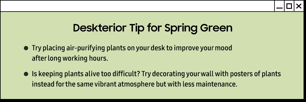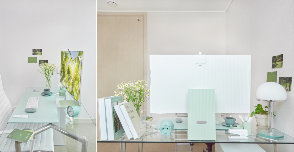 Po długim dniu pracy zdalnej możesz przywrócić oczom trochę życia dzięki Smart Monitorowi M8 w kolorze wiosennej zieleni. Kupując artykuły biurowe w różnych odcieniach pastelowej zieleni, możesz zmienić swoją przestrzeń w wesołe i inspirowane roślinami sanktuarium.