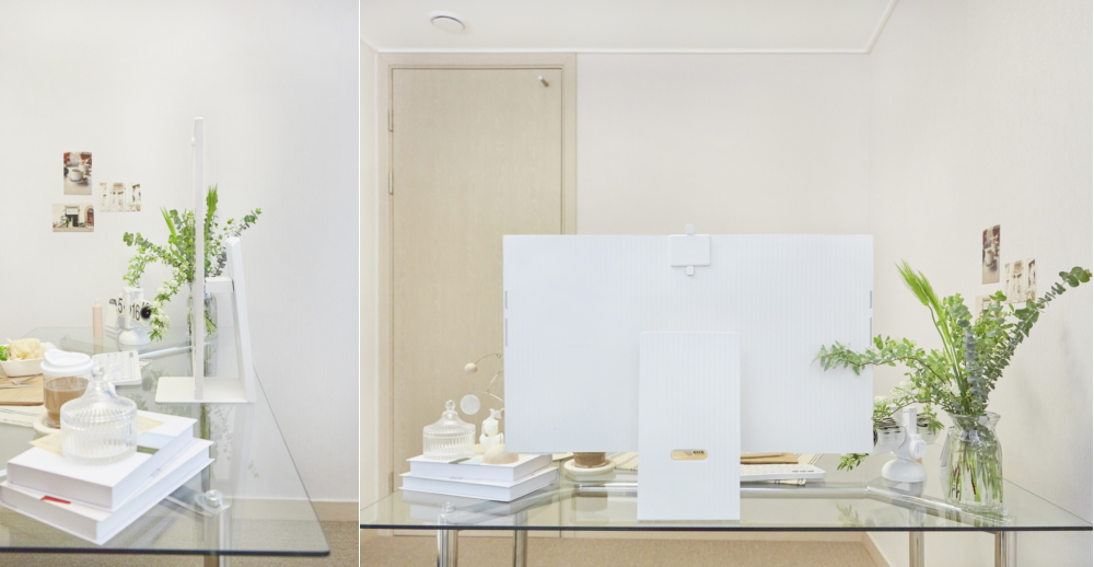 Dla fanów kwiatów Smart Monitor M8 w kolorze Sunset Pink natychmiast przeniesie Cię na rozkwitający festiwal kwiatów wiśni. Dodanie białego wazonu z pięknymi kwiatami do biurka tworzy jasną i optymistyczną atmosferę idealną dla każdego domu.
