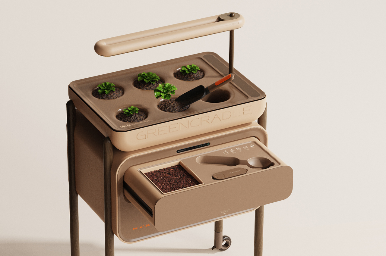 Podczas gdy spędzanie większej ilości czasu w naszych domach pomogło odmłodzić wystrój wnętrz, nastąpił wzrost odpadów domowych. Projektant Robin Akira stworzył Paradise, aby rozwiązać ten problem. Jest to kultywator do roślin domowych ze zintegrowanymi pojemnikami na kompost i pokrywą chroniącą przed nieprzyjemnymi zapachami. Pozwala nam to zmniejszyć ilość odpadów domowych.