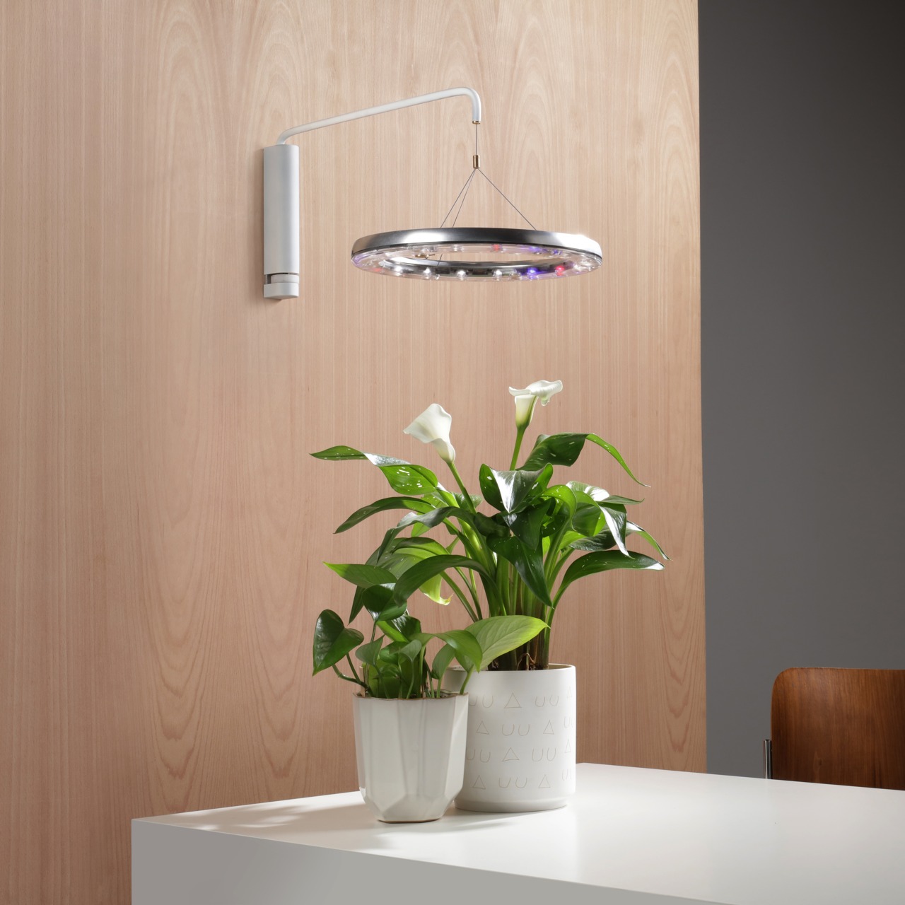 Dostępna w 3 rozmiarach i wśród odmian stojących, stołowych i montowanych na ścianie, CURA to lampa ogrodnicza w kształcie halo, która została zaprojektowana, aby aktywować i promować wzrost roślin. Zasilana diodami LED firmy OSRAM lampa może emitować światło o różnych długościach fal, które pomagają stworzyć odpowiednie warunki wzrostu dla różnych rodzajów roślin. CURA ma ustawienia wstępne, które można wykorzystać do kontrolowania wzrostu ziół i owoców, kwiatów i owoców, roślin ogrodniczych w pomieszczeniach, kiełkowania i innych etapów.