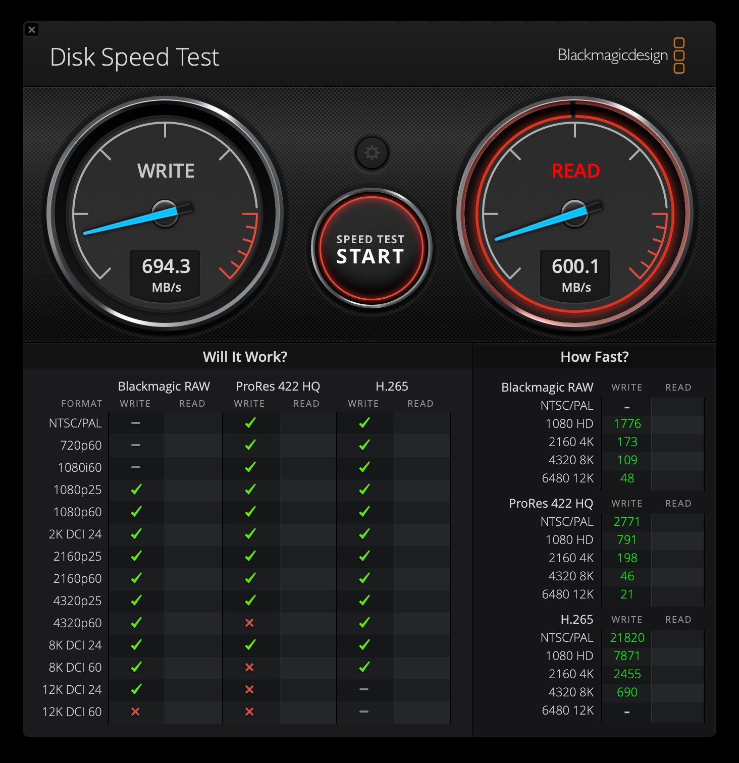 W moim praktycznym teście z Samsung T7 Shield byłem dość zadowolony z wydajności. W moim pierwszym teście udało mi się przesłać plik ~10 GB w około 10 sekund, co przekłada się na około 8 Gb/s. W innym teście udało mi się przesłać większy plik ~150 GB w 180 sekund, czyli około 6,7 Gb/s, więcej niż wystarczająco dla przepływów pracy 4K ProRes, a wszystko to bez powodowania, że zewnętrzna część dysku staje się więcej niż tylko trochę ciepła . Chociaż testy te nie mają charakteru naukowego, dają wyobrażenie o wydajności po podłączeniu przez USB-C do komputerów Mac Studio lub innych komputerów Mac.