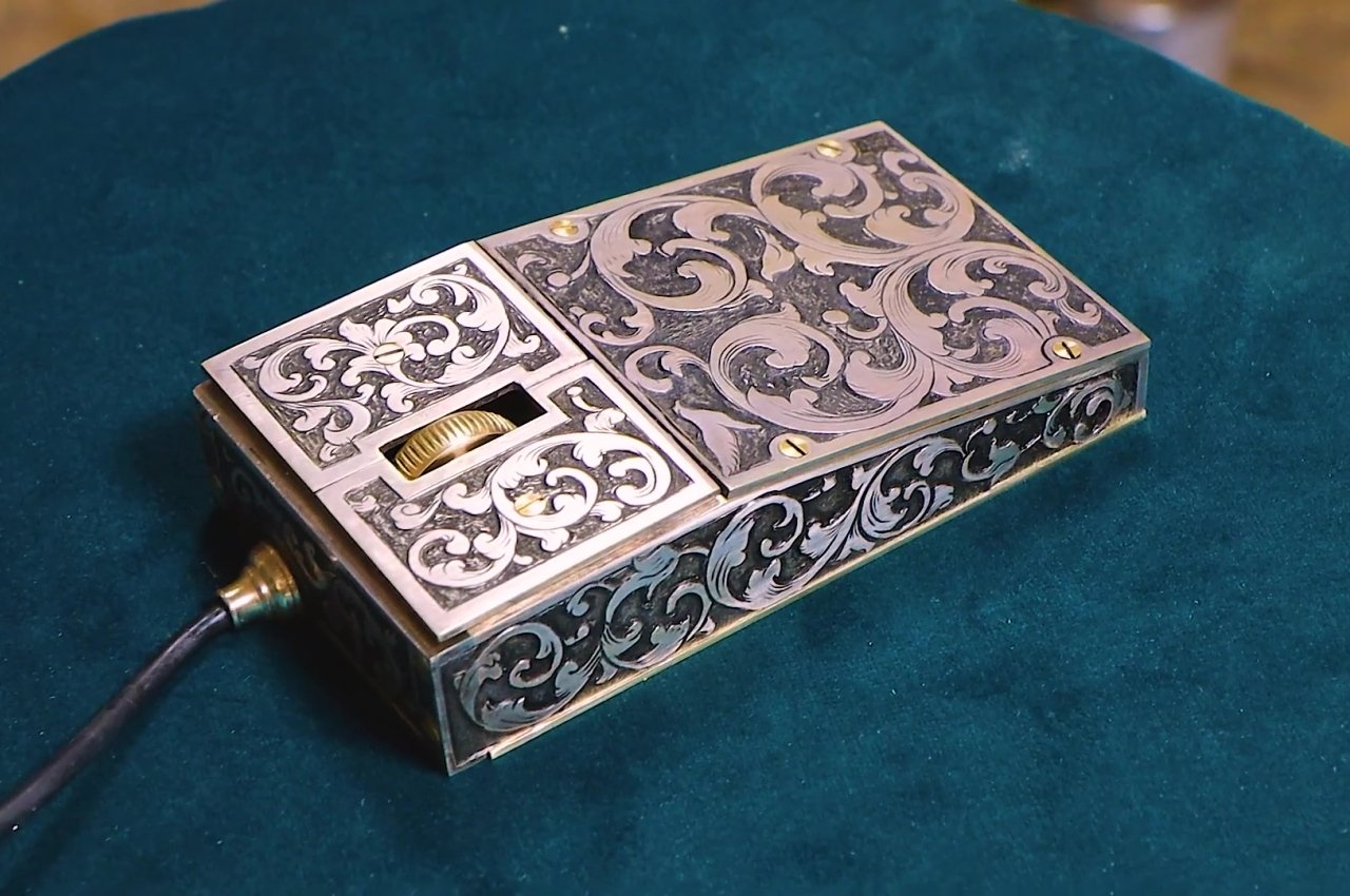 Ta pięknie grawerowana mysz też działa, choć trudno sobie wyobrazić, że na dłuższą metę będzie to wygodne doświadczenie. Projekt nie został zaprojektowany z myślą o ergonomii, więc krytyka jest niesprawiedliwa. To piękne dzieło sztuki. Fakt, że to działa, jest wisienką na torcie.