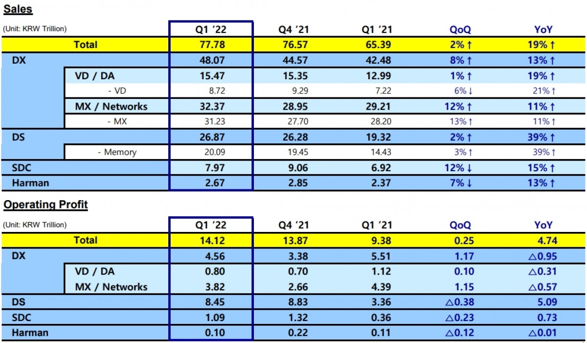 Według szczegółowego sprawozdania finansowego dosłownie wszystkie dywizje odnotowały roczny wzrost zarówno sprzedaży, jak i zysku operacyjnego. Mówiąc o biznesie telefonów komórkowych, Samsung ujawnił, że liczby są wynikiem silnej sprzedaży flagowego modelu Galaxy S22 Ultra, a także „pozytywnych reakcji na nowe, masowe modele 5G” i „solidnej sprzedaży produktów ekosystemu urządzeń”, które obejmują: tablety, smartwatche i urządzenia audio.