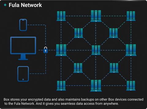 Po złożeniu Box można włączyć, aby dołączyć do innych boksów i stworzyć prywatną, należącą do ludzi sieć FULA. Fula, skrót od Functionland, to sieć pamięci masowej dołączona do Blockchain, która została opracowana przez Box. Dzięki temu możesz bezpiecznie zaszyfrować swoje dane i uczynić je niedostępnymi dla innych. Każde miejsce, którego nie używasz, jest wynajmowane osobom w sieci FULA, dzięki czemu możesz zdobyć tokeny $FULA. Twoje pudełko nie wydobywa monet. Po prostu wydaje nagrody w oparciu o konsensus dotyczący dowodu zasobów. Tokeny $FULA mają wewnętrzną wartość, która z czasem rośnie i spada, tak jak każda waluta, i mogą być sprzedawane na kompatybilnych giełdach.