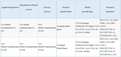 Drugie urządzenie w zestawieniu – vivo V2207A ma większy wyświetlacz o przekątnej 6,56 cala i dwuogniwową baterię o pojemności 2190 mAh, która powinna pochwalić się podobną pojemnością całkowitą 4400 mAh. Jego podana prędkość ładowania jest wyższa, osiągając 80 W, co potwierdza osobna lista w bazie danych agencji 3C.