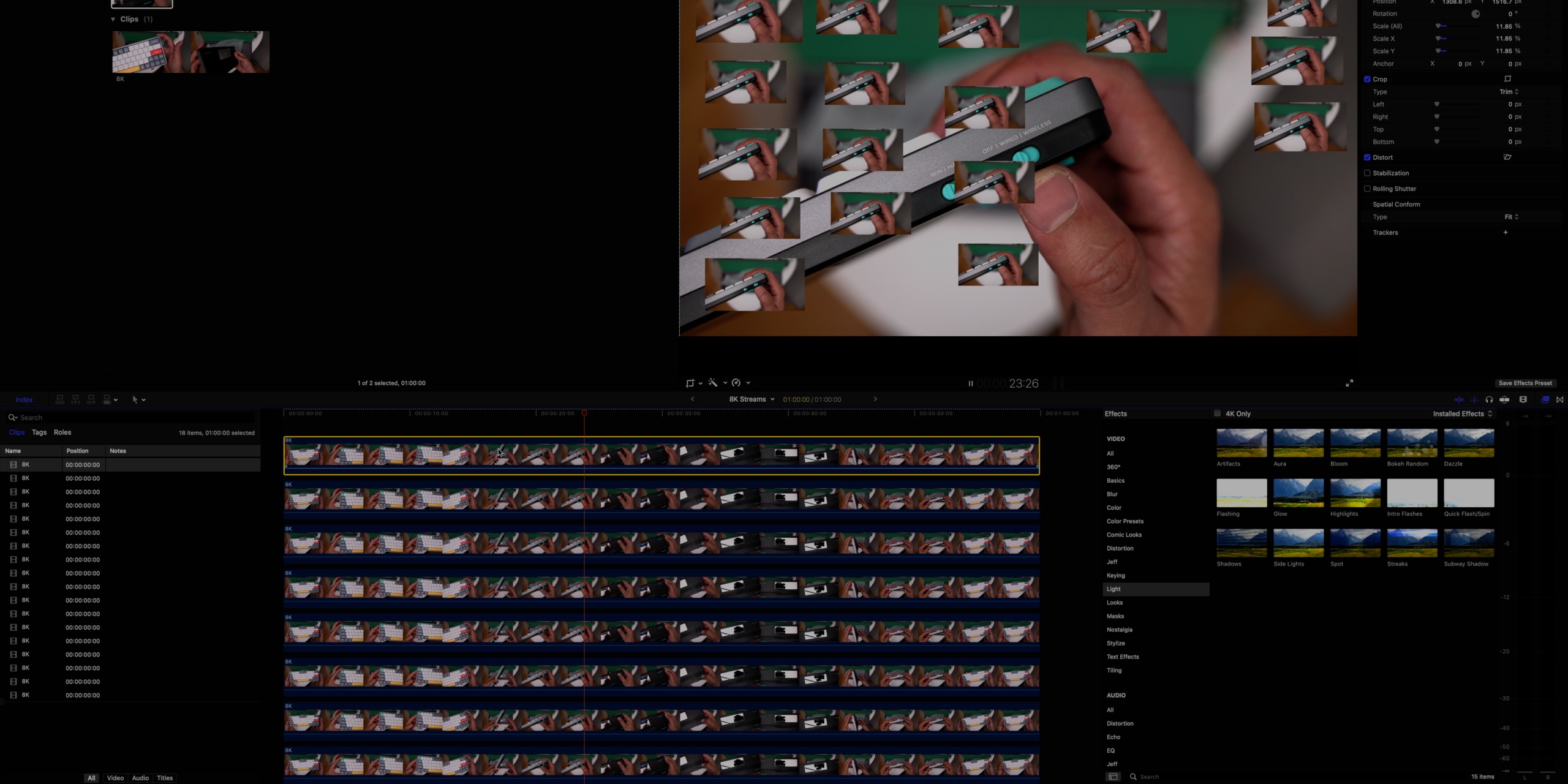 Jeśli nie zauważyłeś, maszyny używane przez Apple do testowania zdolności Mac Studio do obsługi wielu strumieni wideo 8K Pro Res oferują 8 TB określonej pamięci masowej. Nie wierzę, że to przypadek, ponieważ brutalnie szybkie przechowywanie jest niezbędne, gdy zaczynasz przenosić kilkanaście strumieni wideo 8K w tym samym czasie. Apple zauważa, że Mac Studio skonfigurowane z M1 Ultra może odtwarzać szalone 18 strumieni wideo 8K Pro Res 422 w tym samym czasie i chociaż mój Mac Studio ma niezbędne dane uwierzytelniające CPU i GPU, 1 TB pamięci wydaje się służyć jako wąskie gardło powodujące, że w moich testach ostatnie cztery strumienie wideo 8K opuszczają klatki podczas odtwarzania poniżej poziomów czasu rzeczywistego.
