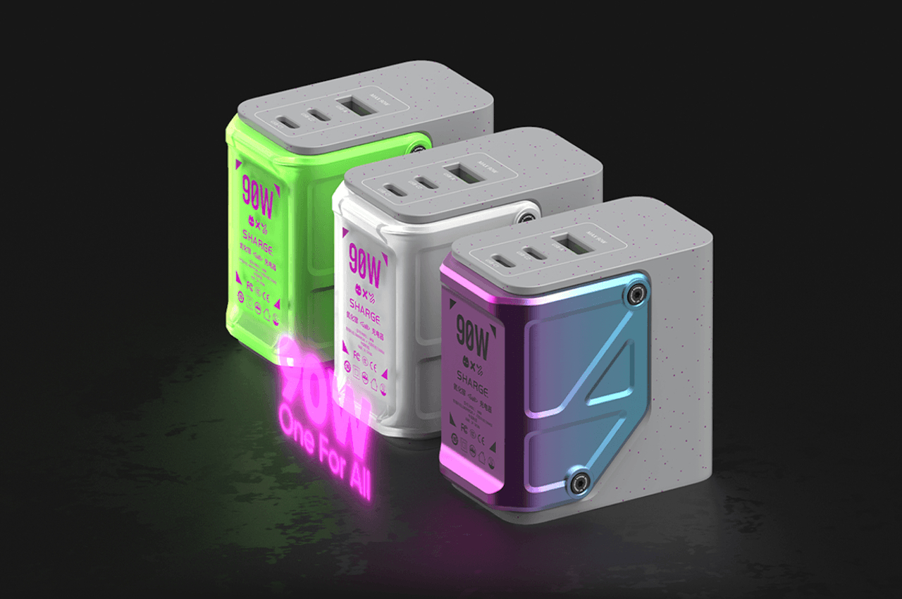 Trzeba przyznać, że ładowarka to poważna sprawa pod tą cyberpunkową powłoką. Maleńkie pudełko jest w stanie dostarczyć 90 W mocy, wystarczającej do naładowania niektórych komputerów MacBook Pro i jest wyposażone w porty USB-C i USB-A. Wykorzystuje nawet modną obecnie technologię baterii GaN (azotek galu), dzięki czemu udaje mu się spakować cios pomimo swojego rozmiaru. Zasadniczo ładowarka nie oferuje żadnej nowej technologii i może być nawet wyprzedzona przez ładowarki bardziej uznanych marek. Pokazuje jednak, że ładowarki nie muszą być nudne i czarne.