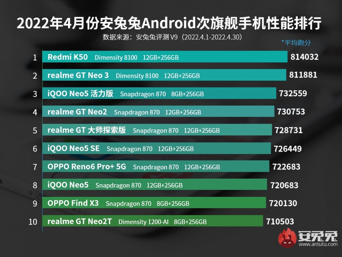 Najnowszy ranking AnTuTu ujawnił dominację Qualcomm zarówno w segmencie flagowym, jak i średniej klasy. Dziewięć z 10 najlepszych flagowców o najlepszych wynikach działa na Snapdragon 8 Gen 1, a siedem z 10 najlepszych średnich tonów jest napędzanych przez Snapdragon 870.
