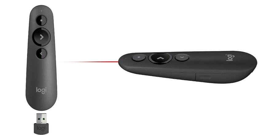 Logitech R500 to proste, ergonomiczne i niezawodne urządzenie, które pozwala prelegentowi skutecznie przekazywać swoje pomysły publiczności. Dzięki lakonicznej konstrukcji R500 (tylko trzy przyciski, których nie można nacisnąć przez pomyłkę), łatwo jest przechodzić od slajdu do slajdu za pomocą zmysłu dotyku. Podkreśl szczególnie ważne informacje za pomocą jasnej czerwonej wiązki wskaźnika.