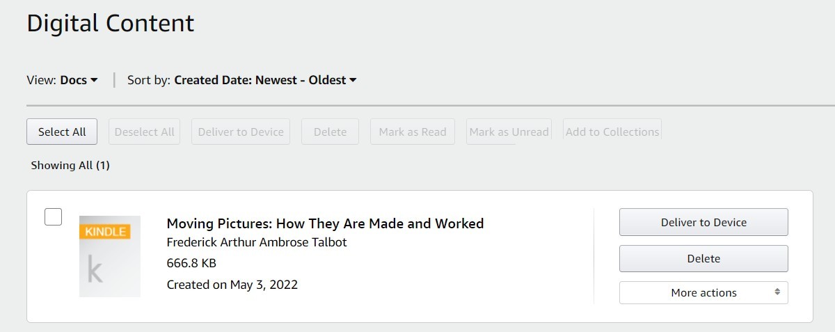 Jak możesz wiedzieć lub nie, możesz wysłać dokument lub książkę pocztą elektroniczną na swój adres @kindle.com, a zostaną one automatycznie przekonwertowane i załadowane na Twoje urządzenie przy następnym połączeniu z Internetem.