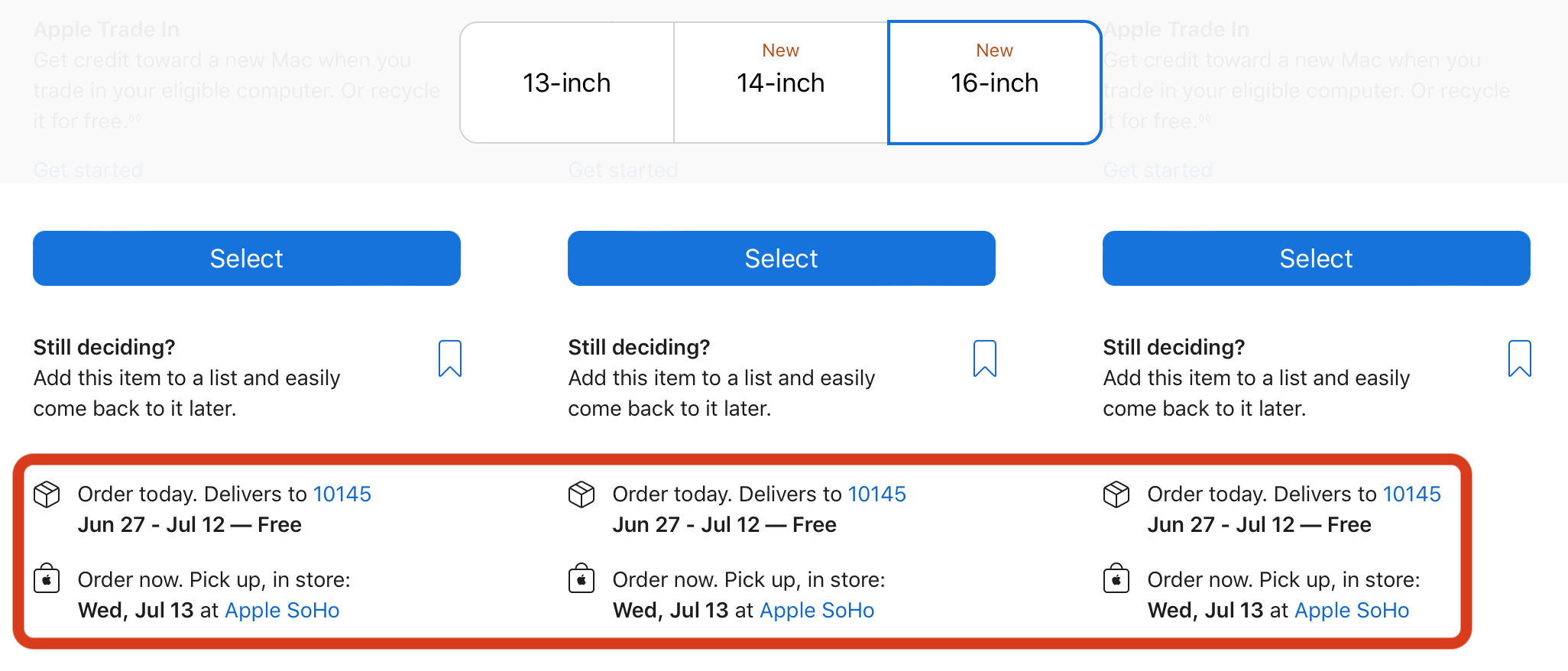 Co ciekawe, nie tylko niestandardowe kompilacje widzą opóźnienia w nowym MacBooku Pro, nawet modele magazynowe są wyświetlane w sprzedaży między 27 czerwca a 12 lipca dla obu rozmiarów ekranu.