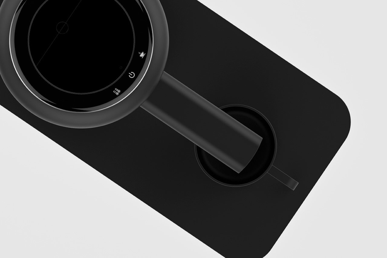 Apple Drip to projekt podobny do Ember Mug. (Ciekawostka: Robert Brunner, główny projektant Ember, intensywnie współpracował z Apple). Ma elegancki, czarny design, który wygląda równie tajemniczo i przystępnie. Nieskomplikowany, ale profesjonalny. Czarny cylinder jest wyposażony w interfejs dotykowy na górnej krawędzi, z zaledwie trzema przyciskami – przyciskiem zasilania, przyciskiem temperatury i przyciskiem dozowania kawy. Zaprojektowany do pracy (jak można przypuszczać) z aplikacją, a nawet z Siri, Drip dozuje kawę do eleganckiego kubka, który znajduje się w wyznaczonym miejscu na większej prostokątnej platformie. Drip wygląda, jakby miał przycisk home, ale nie wiemy, co to robi.