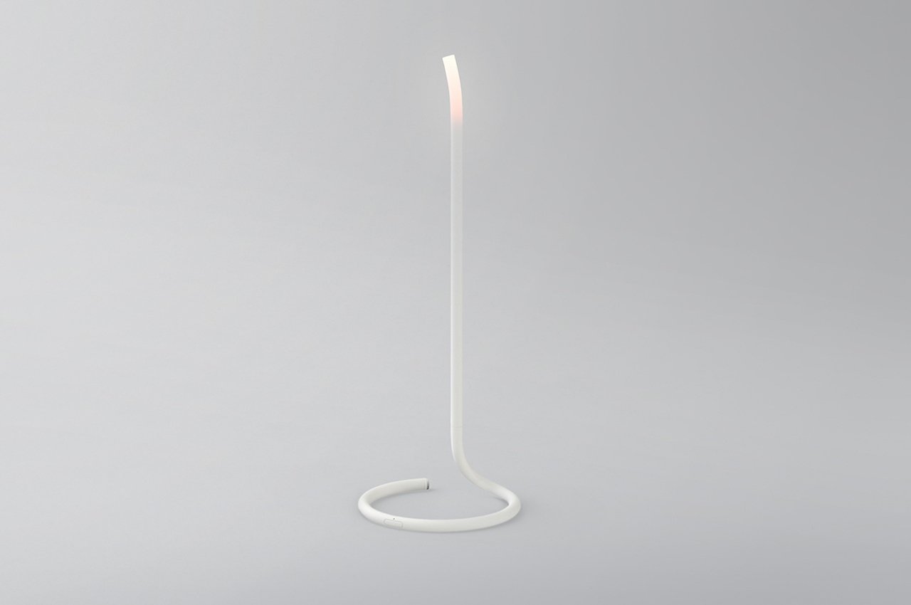 Lampa kadzidełkowa zaprojektowana przez Siyu Lou szczyci się minimalistyczną estetyką. Podobnie jak inne projekty Siyu Lou, ten jest prosty w bieli i swojej formie. Lampa stoi, ponieważ za podparcie służy kolejna wywinięta część na dole. Podstawowym materiałem górnej końcówki jest silikon, dzięki czemu może się wyginać.