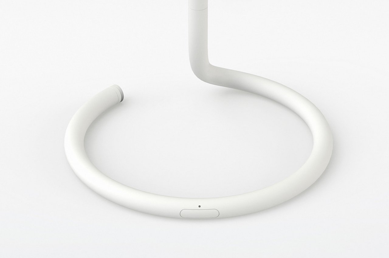 Przycisk zasilania znajduje się na dolnym zawinięciu. Jest też mała dioda LED, która, jak zakładamy, wskazuje, czy bateria jest słaba. Zakładamy również, że ten jest zasilany bateryjnie, ponieważ nie ma przewodu ani kabla. Korpus lampy jest bardzo smukły, więc bateria może wystarczyć do jej zasilania.