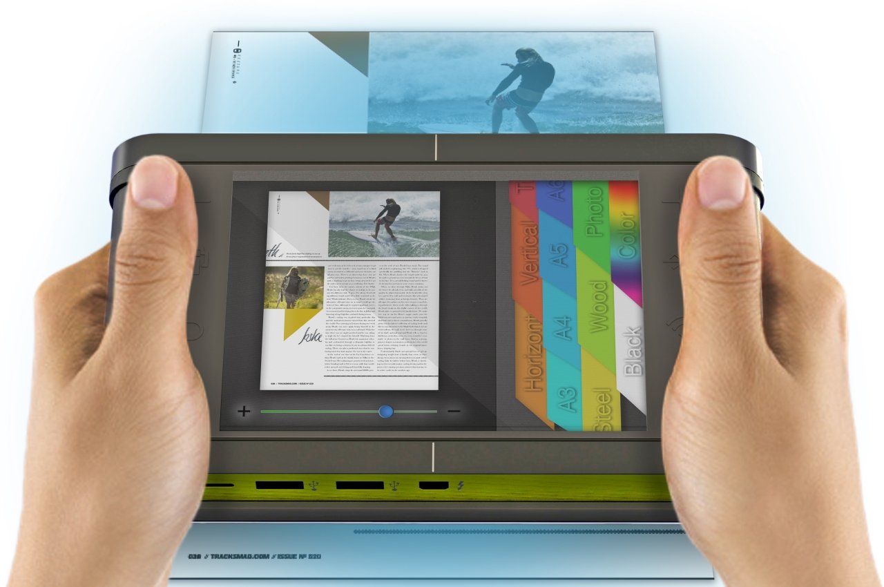 Bez ograniczeń związanych z papierem fizycznym drukarka może również uwolnić się od konieczności przywiązania do jednego miejsca. Printall został zaprojektowany tak, aby był mobilny i przenośny, dzięki czemu możesz drukować na dowolnej powierzchni obsługującej tę samą technologię kserograficzną. To powiedziawszy, wydaje się, że będziesz musiał być tym, który poprowadzi drukarkę po papierze lub powierzchni, więc nie jest do końca pewne, jak będzie to dokładne. Jest po prostu lekki. Możesz także po prostu cofnąć się i wyświetlić obraz na „papierze”, aby zobaczyć, jak magicznie się pojawia.