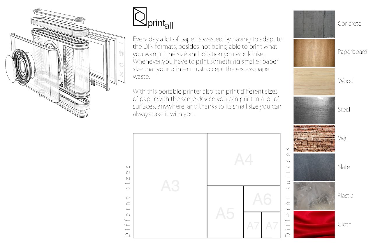 Koncepcja Printall umożliwia dostosowanie wydruku drukarki do papieru o dowolnym rozmiarze. Jest to możliwe, ponieważ nie działa dokładnie tak samo, jak zwykłe drukarki. Nie musisz podawać tego papieru, ponieważ tak naprawdę nie musisz nakładać na niego atramentu, tak jak na zwykłej drukarce atramentowej.