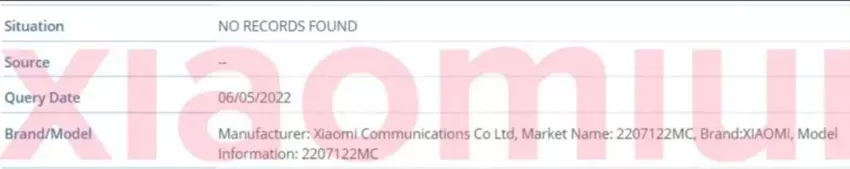 Wzmianki o nowym modelu znalazły się w Mi Code. Xiaomiui po raz pierwszy odkrył numer modelu telefonu - 2207122MC w bazie danych IMEI. Urządzenie nosi nazwę kodową „dauimer”.