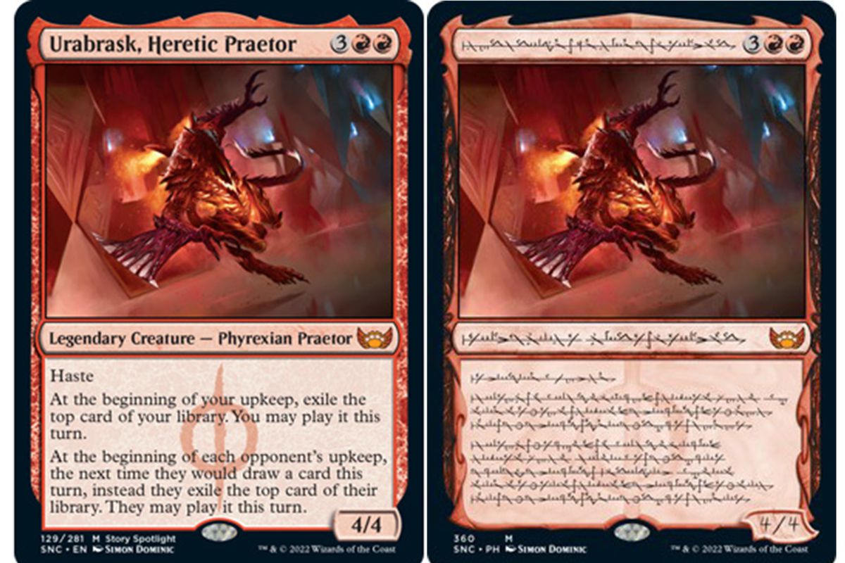 „Moim marzeniem jest, aby pewnego dnia [Czarodzieje opublikowali] bardzo krótką historię, zawierającą mniej niż 1000 słów, ale wszystko jest napisane w języku phyrexian” – powiedział Félix. „Wtedy po prostu pozwolili nam pojechać z tym do miasta. Jestem prawie pewien, że moglibyśmy to rozszyfrować.
